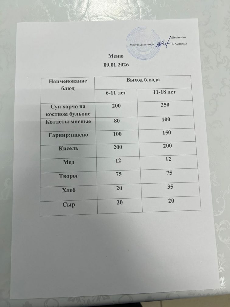 Меню на 09.01.2026