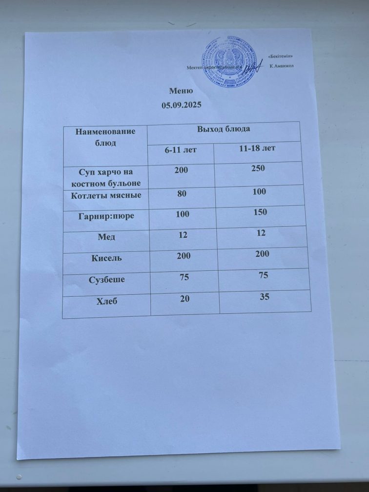 Ас мәзірі 05.09.2025
