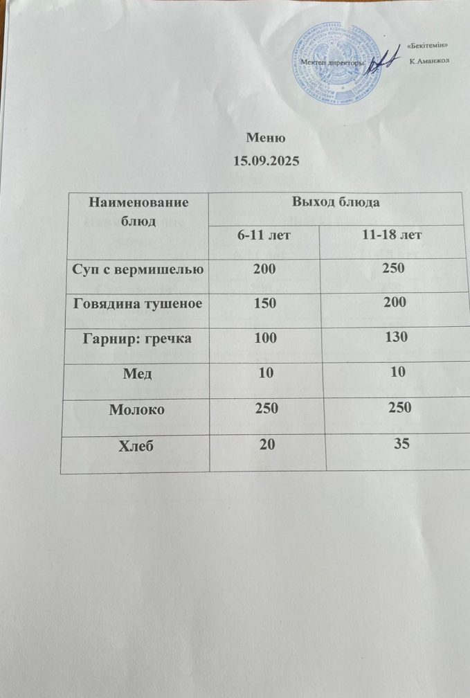 Ас мәзірі 15.09.2025