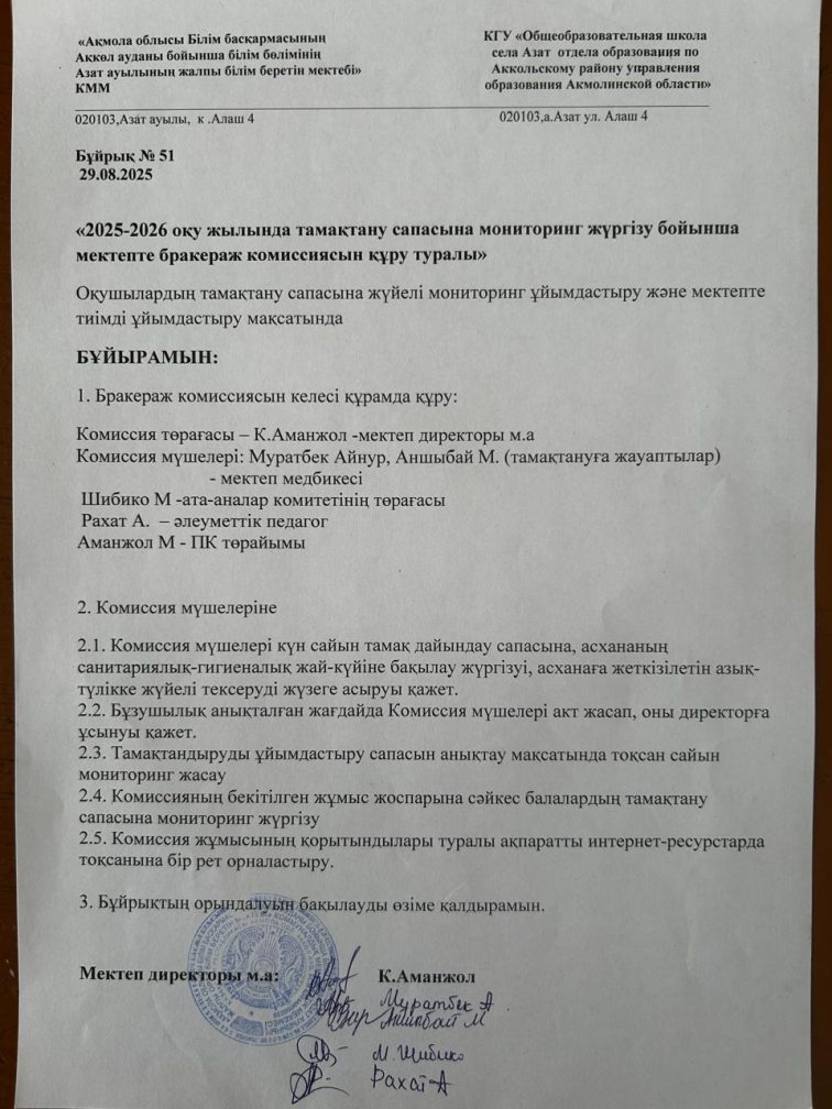 Коммунальное государственное учреждение "Общеобразовательная школа села Азат отдела образования по Аккольскому району управления образования Акмолинской области"